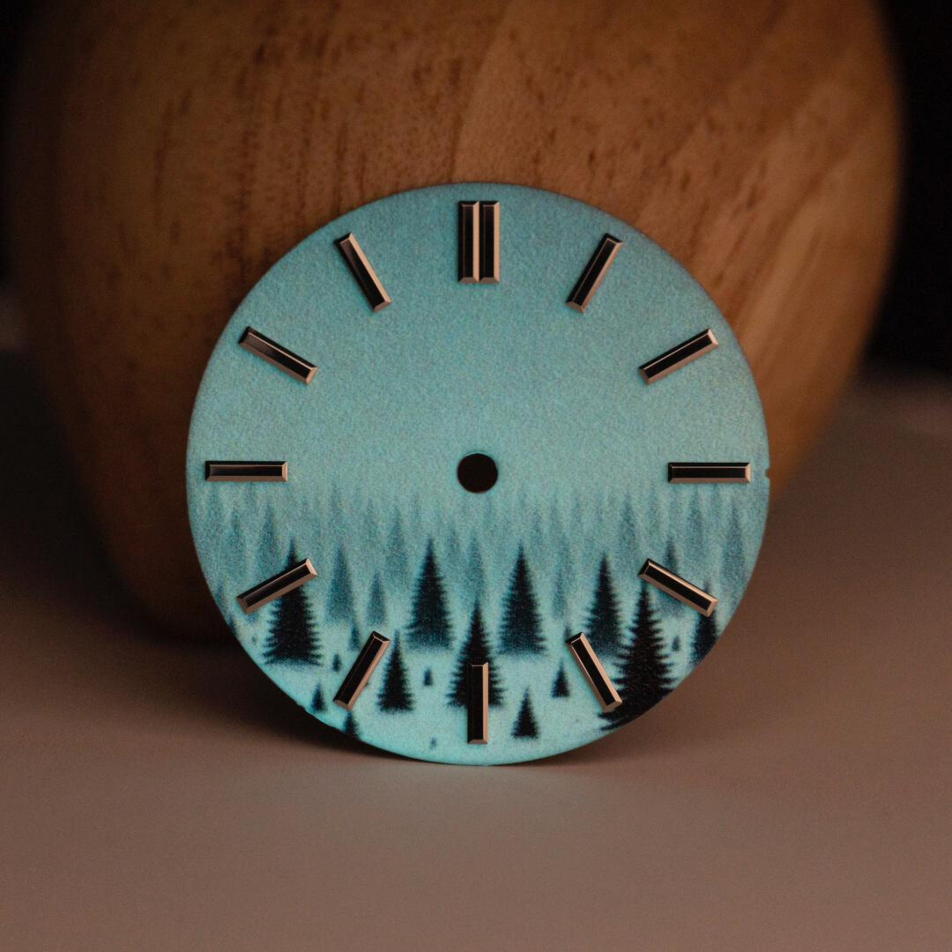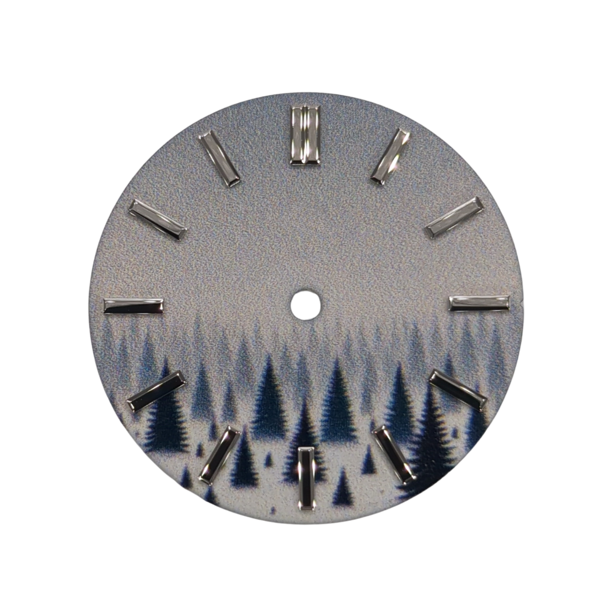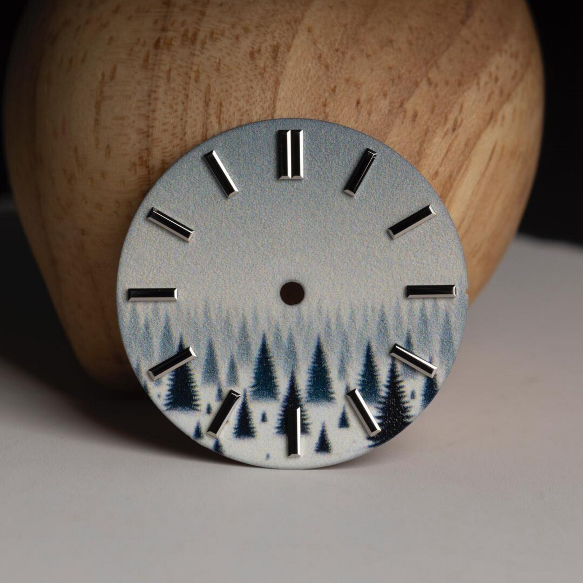 Introducing our latest creation, the Beyond dial, a captivating piece that transports you to a mysterious, snow-covered forest, shrouded in mist and secrets.