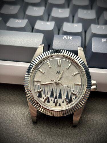 Découvrez notre dernière création, le cadran de montre Beyond, une pièce captivante qui vous transporte dans une forêt mystérieuse, recouverte de neige et enveloppée de brume et de secrets.